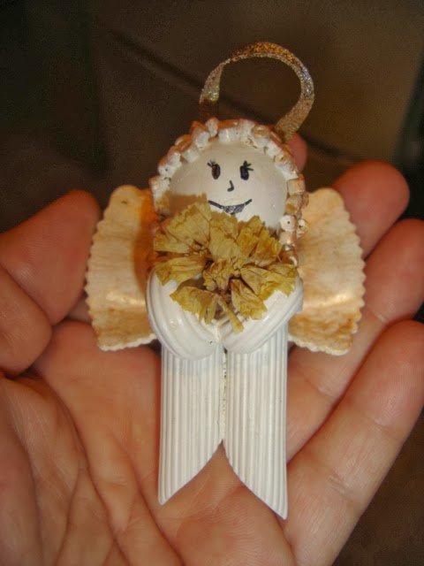 La cabeza es una bolita de poliestireno. Todo unido con cola común y luego pintado con pintura acrílica. Son muy fáciles y baratos. Pero hay que pintarlos, por que de lo contrario absorben la humedad ambiente y se rompen. Quedan muy lindos pintados totalmente en dorado o plateado. Como souvenir navideño o para colgar del arbolito.